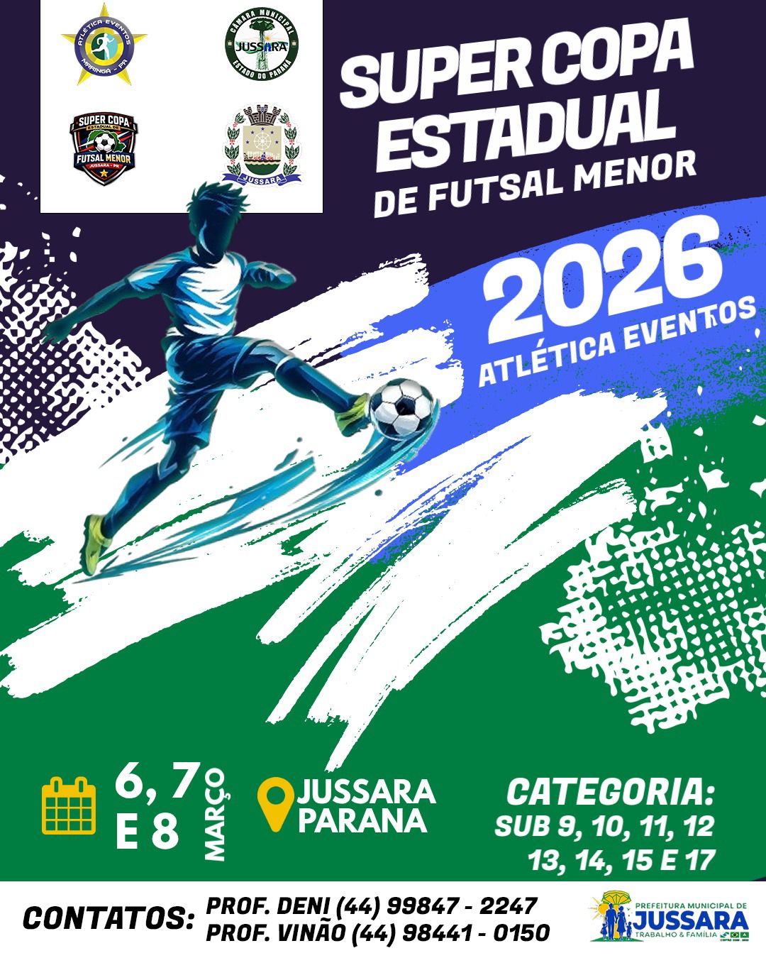 A Super Copa de Futsal Menor 2026, organizada pela Atlética Eventos, será realizada nos dias 6, 7 e 8 de março, em Jussara – Paraná, reunindo j