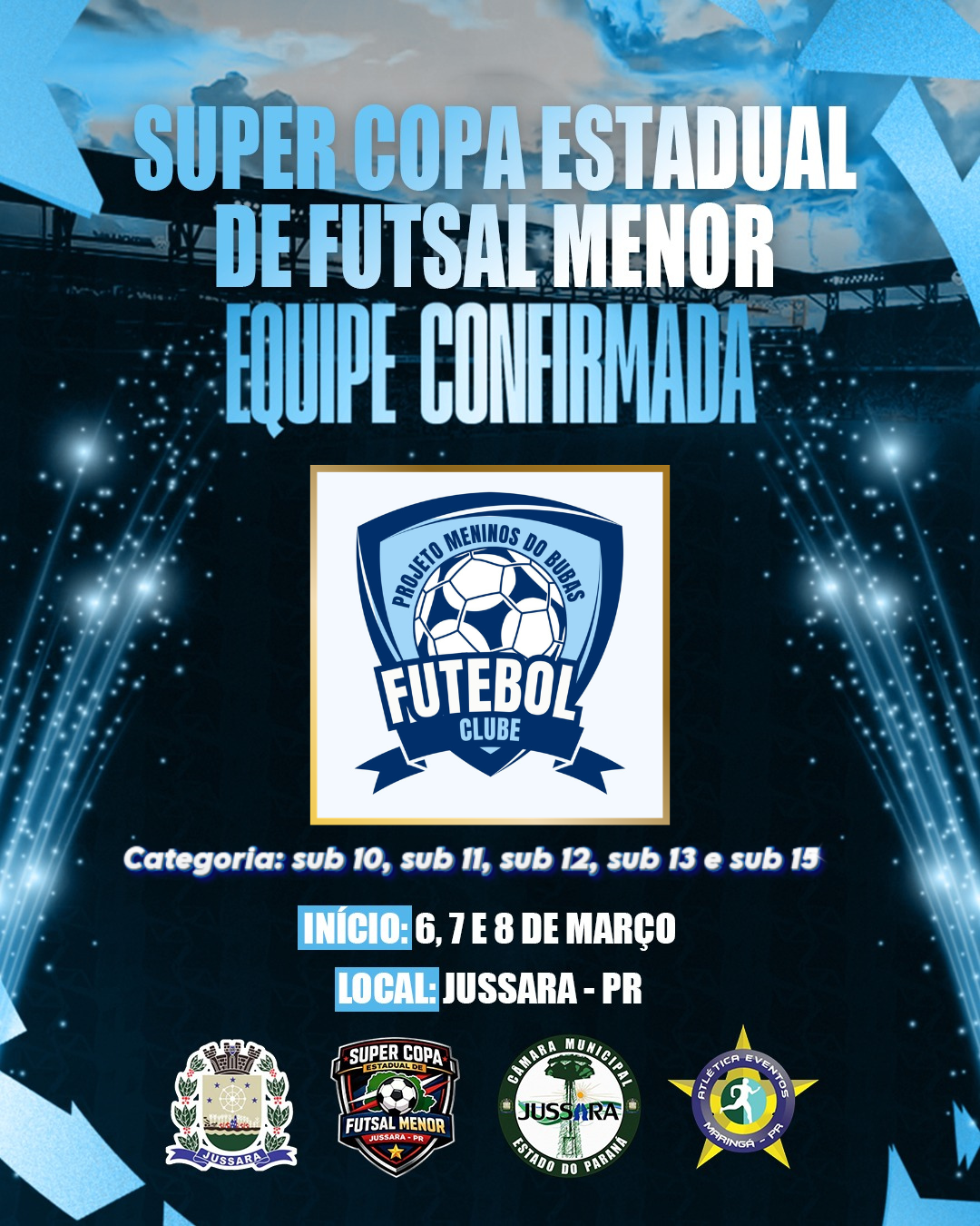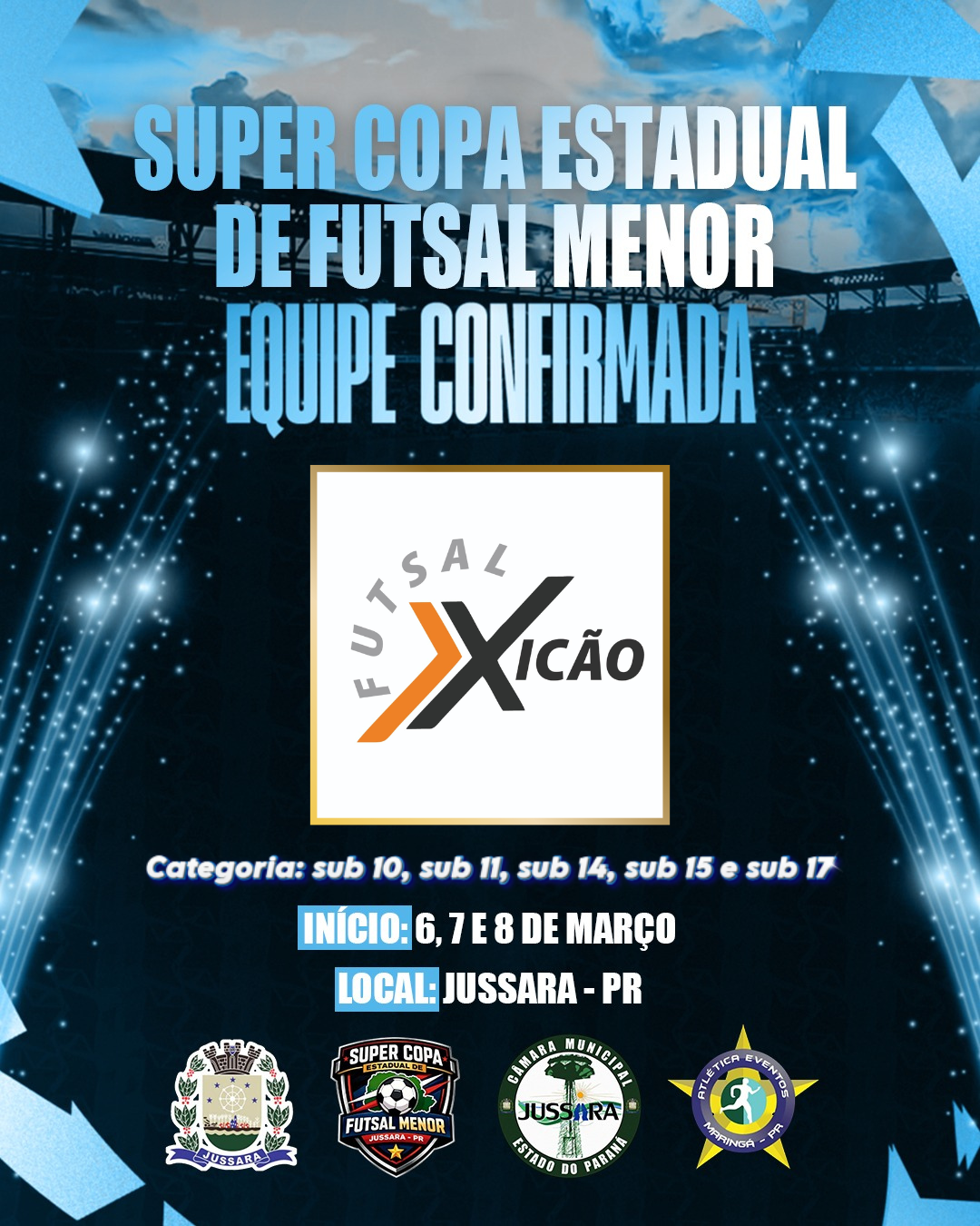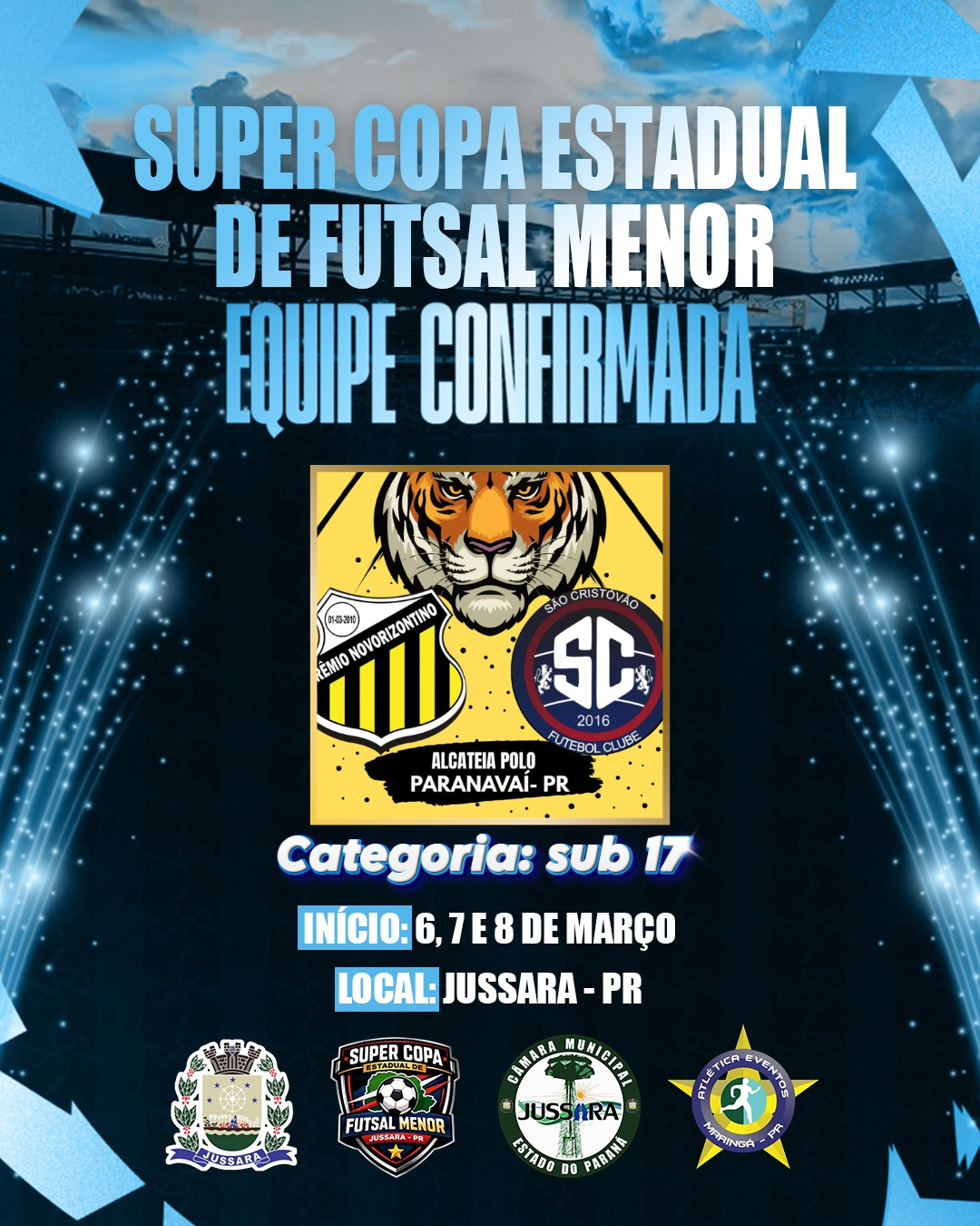 A cidade de Jussara – PR será palco de um dos principais eventos do futsal de base do estado: a Super Copa Estadual de Futsal Menor. A competição acontece nos dias 6, 7 e 8 de março, reunindo equipes nas categorias Sub-11, Sub-12, Sub-13, Sub-14 e Sub-15.