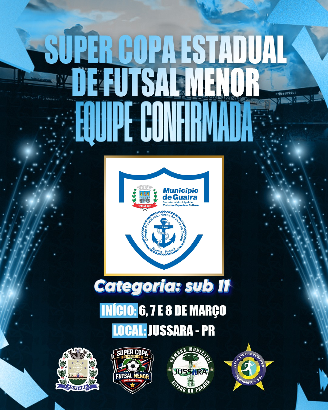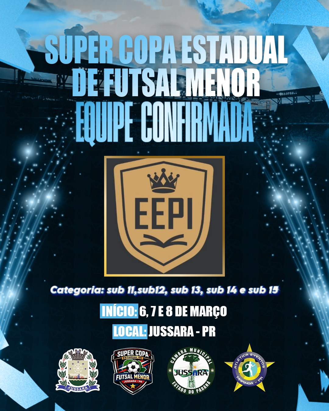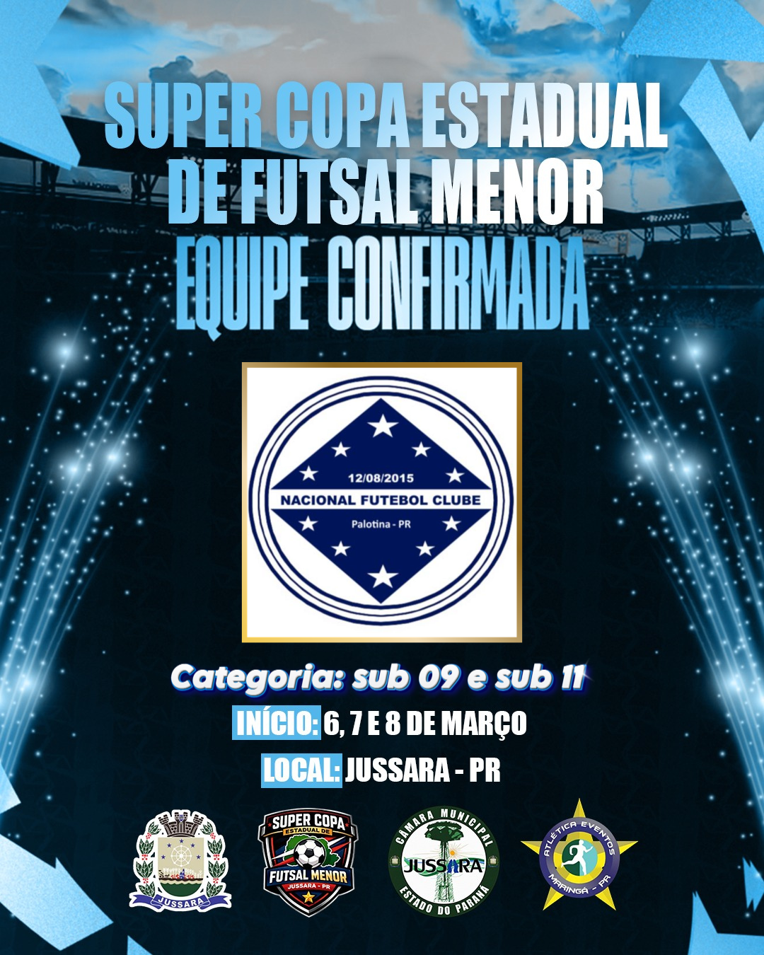 A cidade de Jussara – PR será palco de um dos principais eventos do futsal de base do estado: a Super Copa Estadual de Futsal Menor. A competição acontece nos dias 6, 7 e 8 de março, reunindo equipes nas categorias Sub-11, Sub-12, Sub-13, Sub-14 e Sub-15.