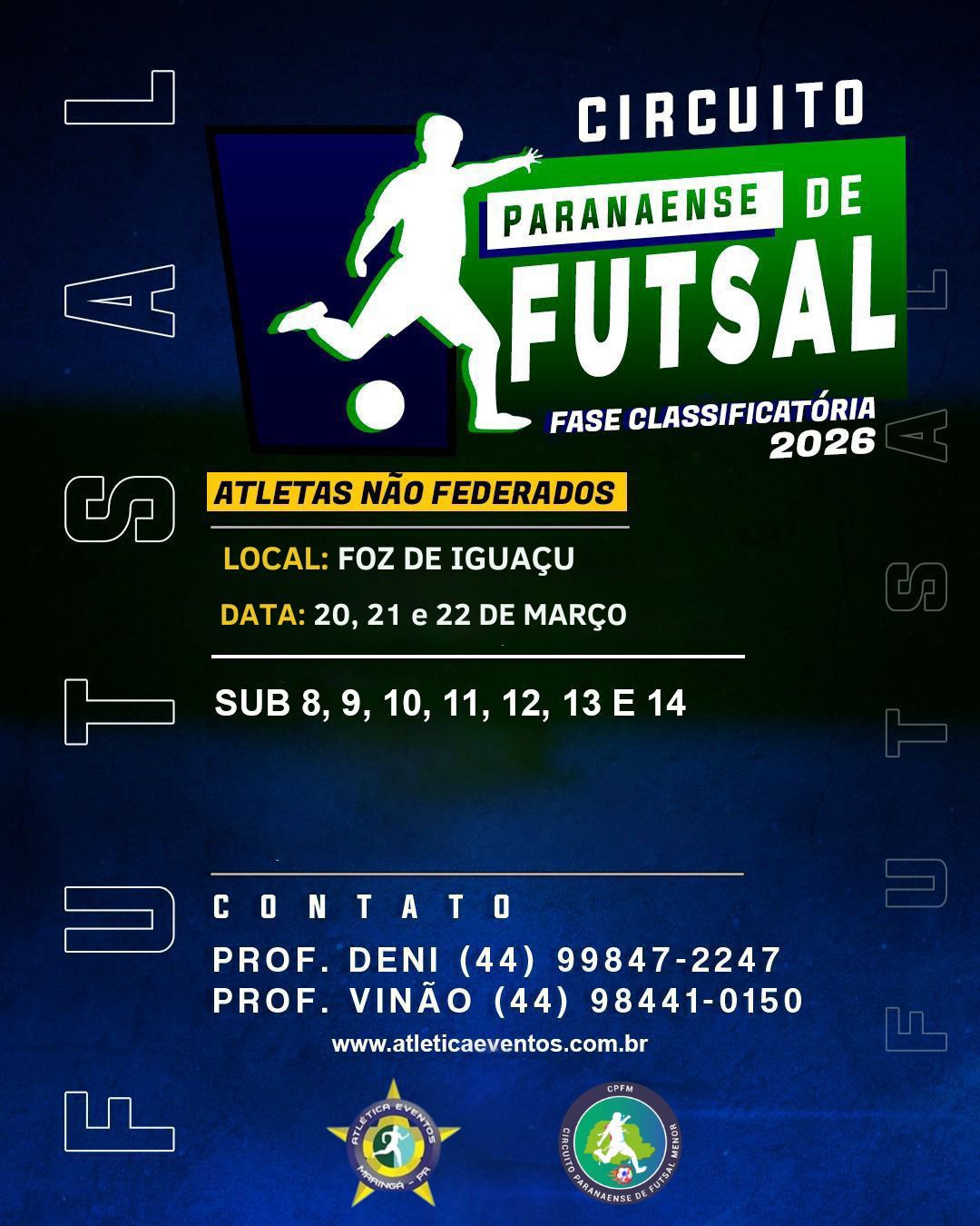 O Circuito Paranaense de Futsal 2026 chega à sua fase classificatória reunindo jovens talentos de diversas categorias em Foz do Iguaçu. Voltado para atletas não federados, o evento será realizado nos dias 20, 21 e 22 de março, contemplando as categorias Sub 8 ao Sub 14. A competição se consolida como uma importante vitrine para o futsal de base, incentivando o desenvolvimento esportivo, a integração entre equipes e a descoberta de novos talentos no cenário paranaense.