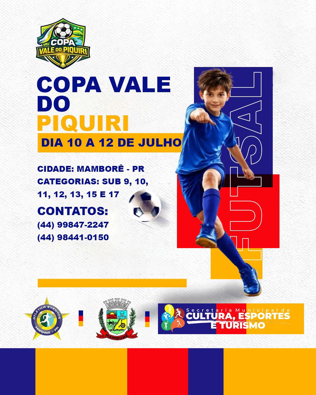 A 3ª Copa Vale do Piquiri de Futsal Menor, realizada na cidade de Mamborê – PR, consolida-se como uma competição de grande destaque no cenário regional. O evento conta com excelente nível técnico, proporcionando jogos competitivos e de alto rendimento.