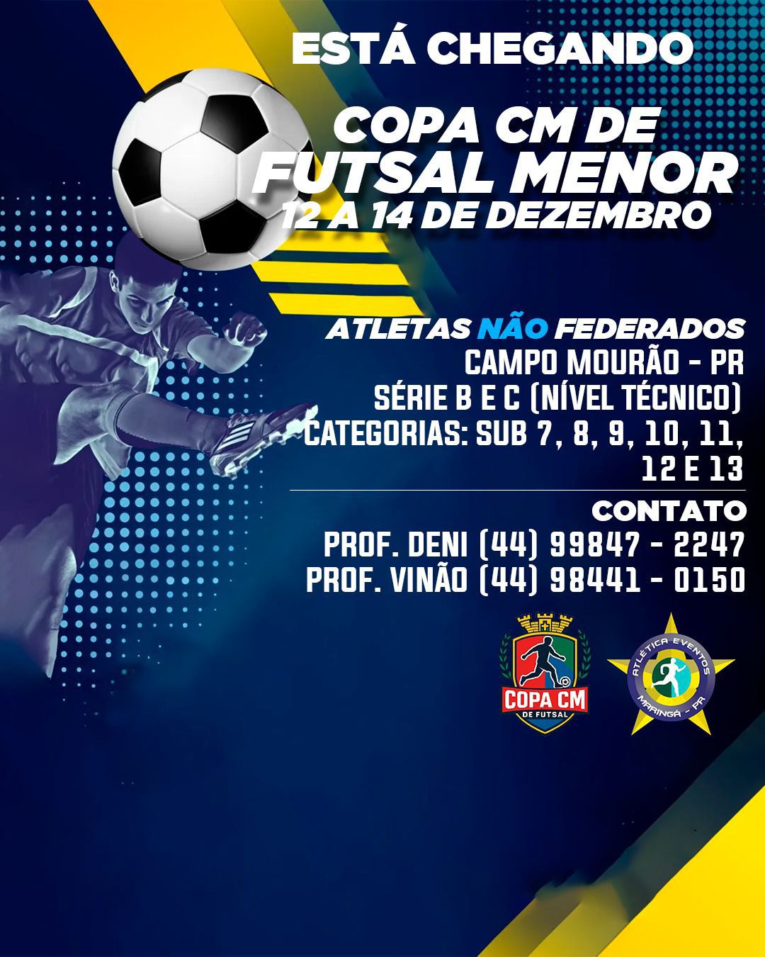 Entre os dias 12 e 14 de dezembro, Campo Mourão – PR recebe a Copa CM de Futsal Menor, competição destinada a atletas não federados das séries B e C (nível técnico).